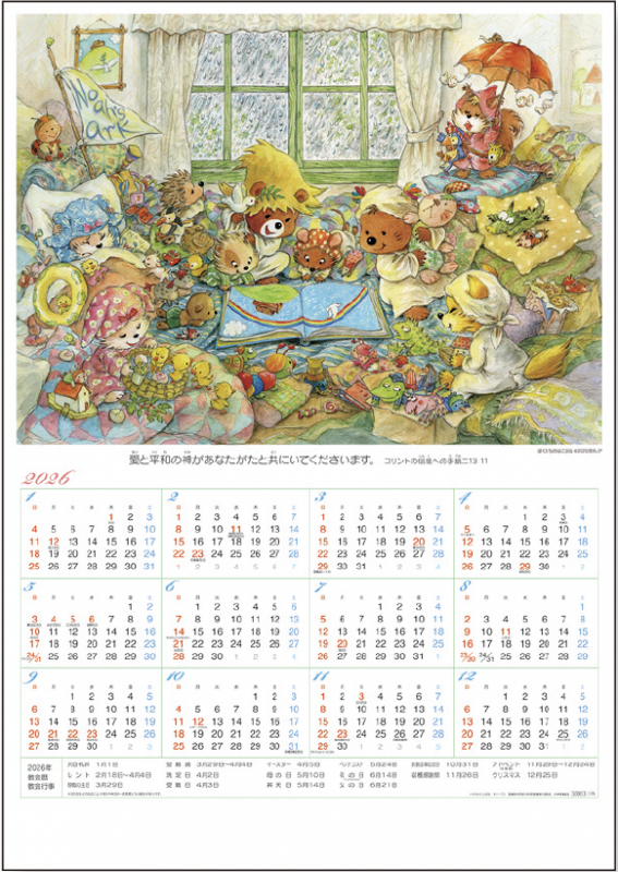 2026年 ホームカレンダー のどか森 「ぼくたちのはこぶね」 いのちのことば社・オリーブス ---------------------------------- ■500018 (5枚入り) ■500013(20枚単位) ※1枚 160円+税 ---------------------------------- ■第二コリント13:11(新共同訳) ■サイズ/タテ59.4×ヨコ42cm ■教会暦入り ■イラスト 河井ノア 【お取り寄せ】2026年 ホームカレンダー のどか森 「ぼくたちのはこぶね」 500018(5枚)、500013(20枚単位)※選択 型番 500013-18 ポイント 44pt 販売価格 880円 購入数 500018(5枚)880円500013(20枚単位)3,520円 オプションの価格詳細はコチラ shopping_cartカートに入れる mail_outline この商品についてお問い合わせ ツイート error_outline 特定商取引法に基づく表記 (返品など) share この商品を友達に教える undo 買い物を続ける forum レビューを見る(0件) rate_review レビューを投稿