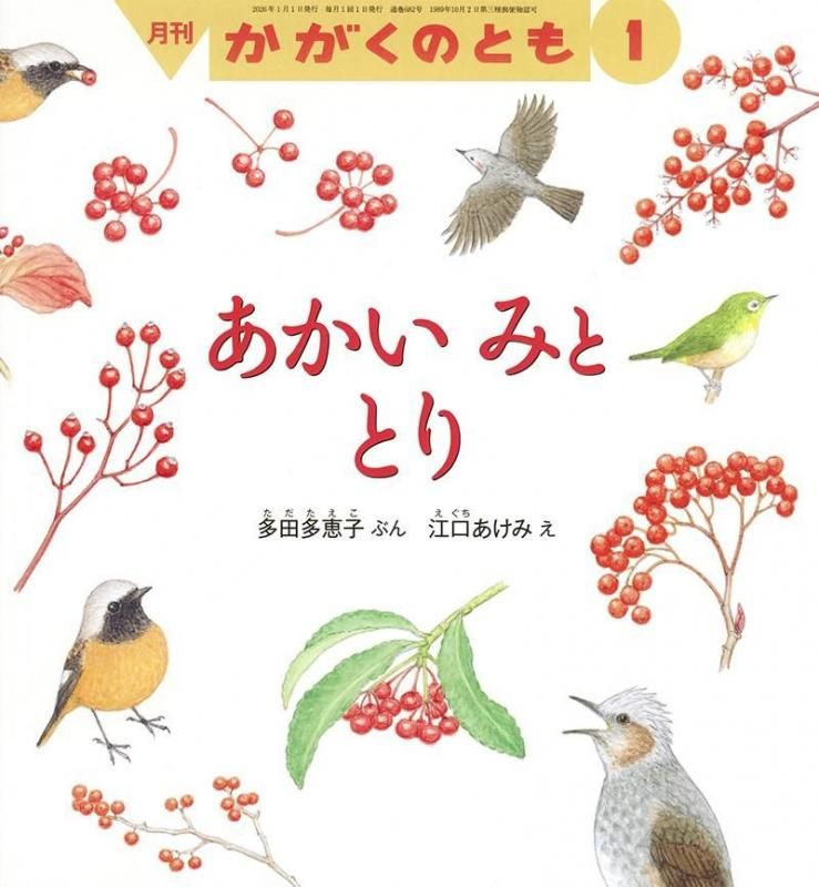 2026年1月号 あかい みと とり 多田 多恵子 文 江口 あけみ 絵 ノイバラ、ナナカマドなど、冬に赤い実をつける植物がたくさんあります。植物は鳥に種を運んでもらいたくて、鳥の目にめだつ赤い色で鳥を誘っているのです。鳥がのみこみやすいように、丸くてつるんとした小さな実をつけますが、おいしいとは限りません。毒のあるものもあります。なぜでしょう?「食べてもらいたい。でも、ちょっとだけ」植物の作戦を考察します。 かがくのとも 2026年1月号 あかい みと とり ポイント 23pt 販売価格 460円 購入数 shopping_cartカートに入れる mail_outline この商品についてお問い合わせ ツイート error_outline 特定商取引法に基づく表記 (返品など) share この商品を友達に教える undo 買い物を続ける forum レビューを見る(0件) rate_review レビューを投稿