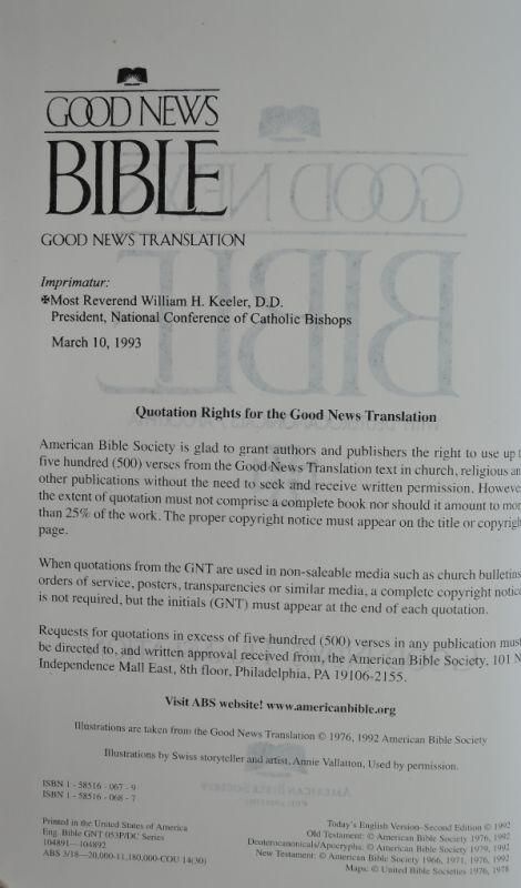 英語聖書 TEV(Today’s English Version)・・・・・・Good News Bible 現代人に親しみ易い聖書翻訳というニーズに応え、1976年完成出版した。伝統的用語にとらわれないことを基本方針とし、Gospel(福音)の代わりにGood Newsを用いている。 外国語 英語 140×210 クロス装 【新定価】英語 聖書 TEV第2版・アポクリファ付 TEV4891 型番 【S】9781585160679 ポイント 231pt 販売価格 4,620円 購入数 shopping_cartカートに入れる mail_outline この商品についてお問い合わせ ツイート error_outline 特定商取引法に基づく表記 (返品など) share この商品を友達に教える undo 買い物を続ける forum レビューを見る(0件) rate_review レビューを投稿