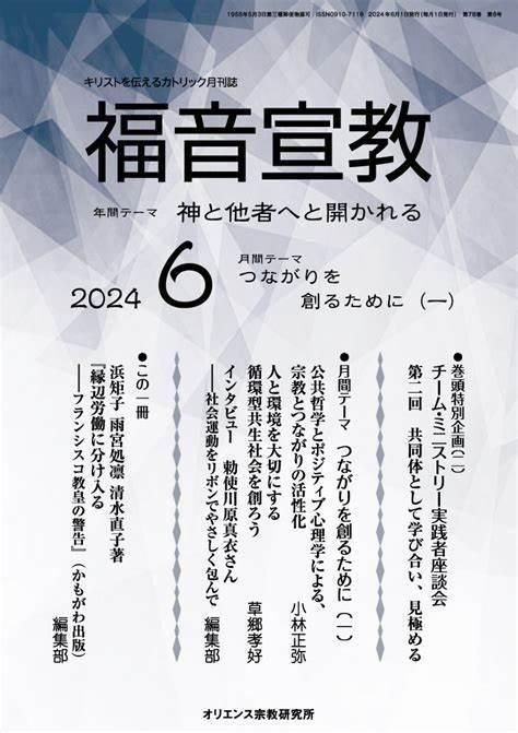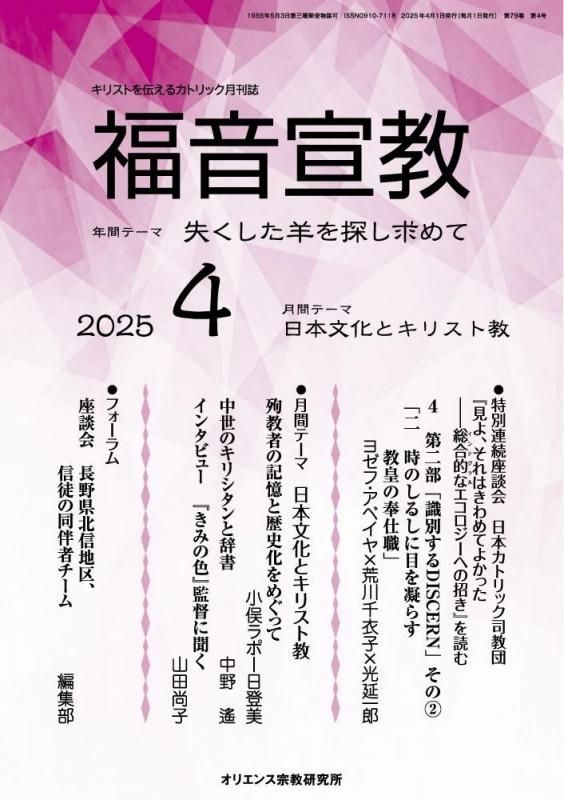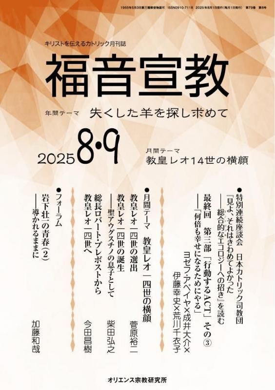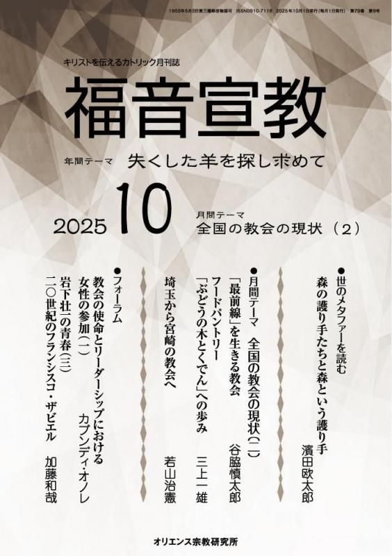 福音宣教 発行:オリエンス宗教研究所 キリストを伝えるカトリック月刊誌 福音宣教 2025年 年間テーマ 失くした羊を探し求めて 信仰を養うためのヒントを分かち合い、 社会を福音の価値観から見つめ直すための 特集・連載記事をお届けします。 月刊・毎月15日発行 年間11回(8.9月合併号) 1部定価:660円(税込) 送料別 福音宣教 2025年1月号〜 ※号数をお選びください 型番 09107118 ポイント 33pt 販売価格 660円 購入数 1月号660円2月号660円3月号660円4月号660円5月号660円6月号660円7月号660円8・9月号660円10月号660円11月号660円 オプションの価格詳細はコチラ shopping_cartカートに入れる mail_outline この商品についてお問い合わせ ツイート error_outline 特定商取引法に基づく表記 (返品など) share この商品を友達に教える undo 買い物を続ける forum レビューを見る(0件) rate_review レビューを投稿